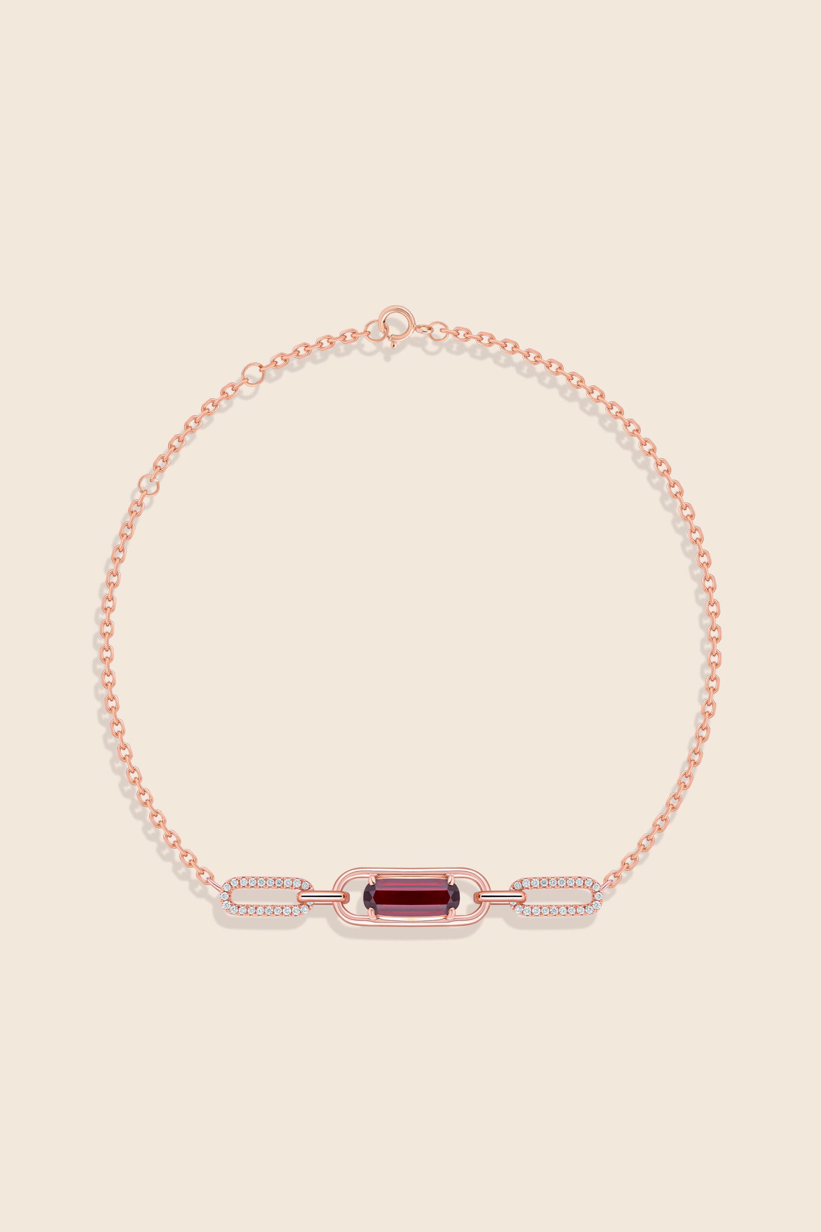 A luminous embrace of rose gold, garnet, and diamond, evokes deep passion, radiant strength, and the quiet grace of enduring beauty.