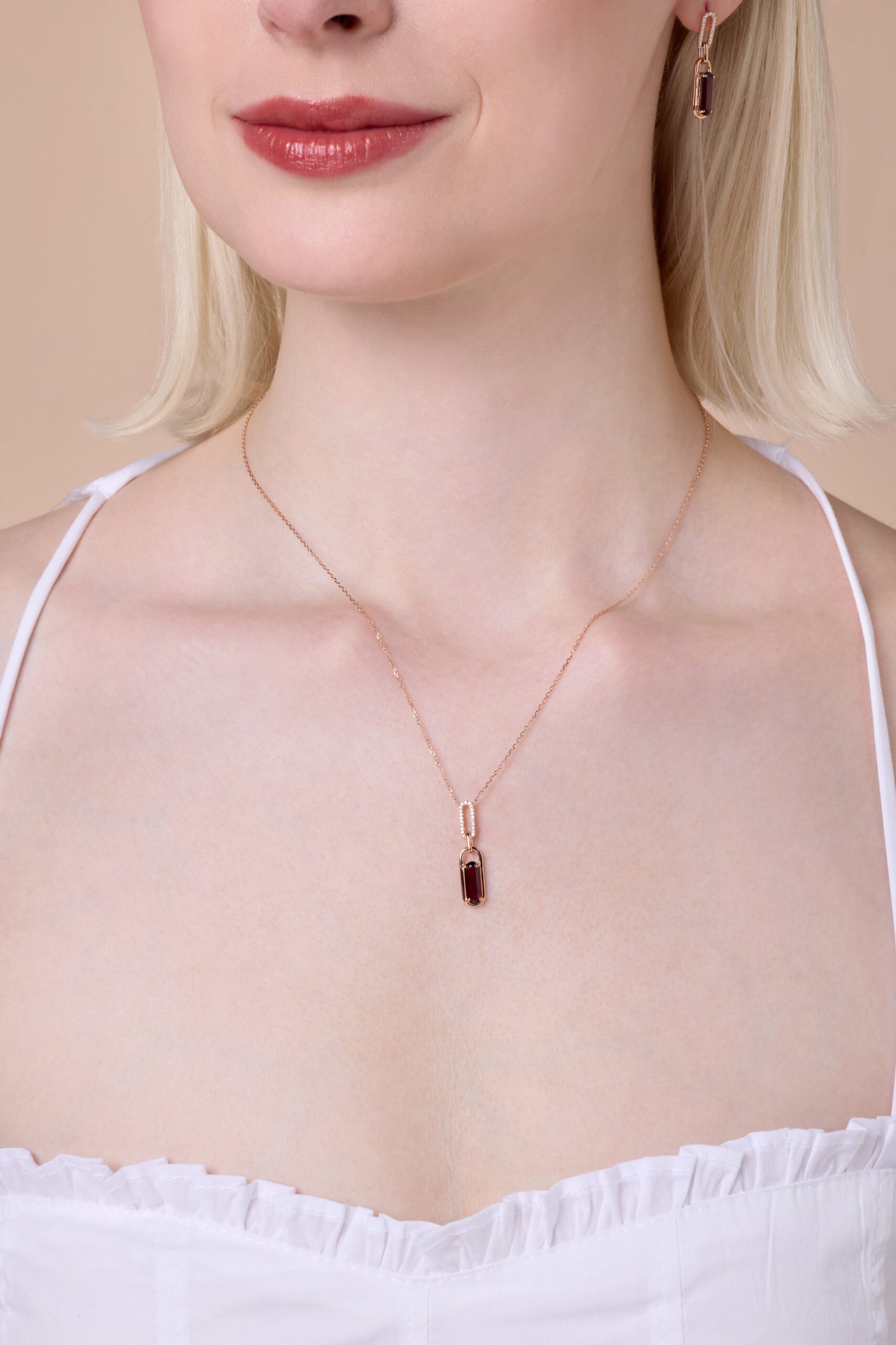 A deep garnet heart framed by sparkling diamonds in rose gold. capturing passion, courage, and the timeless essence of bold elegance.