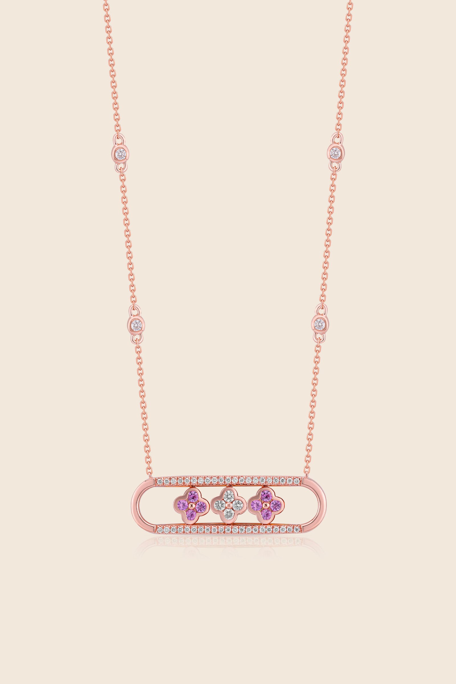 Rose gold, sparkling with diamonds, holds blossoms of amethyst and light an ode to the floral motifs of Islamic design, where color and grace unite