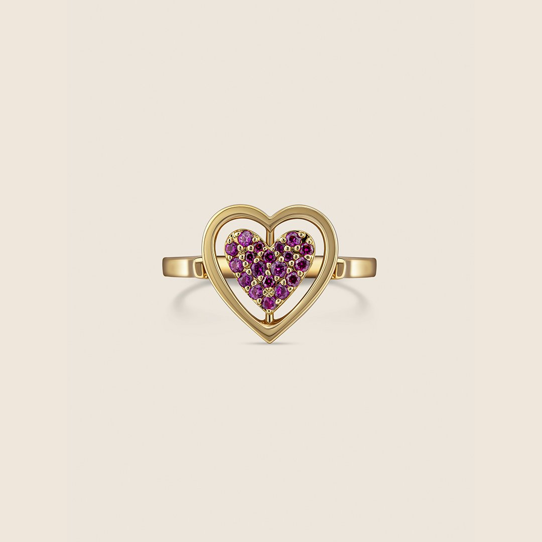 Esme yellow gold diamond and ruby flipable heart ring
