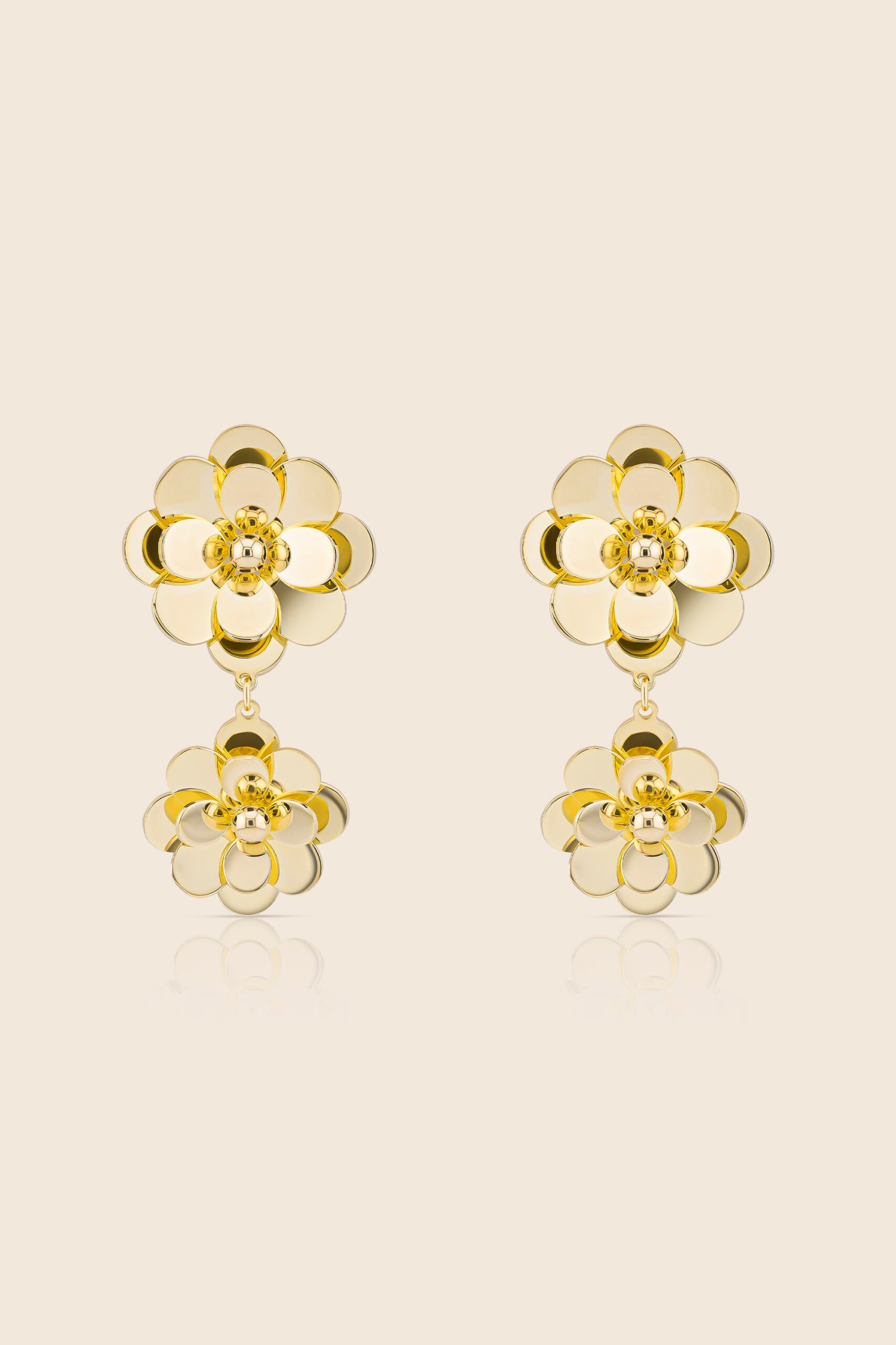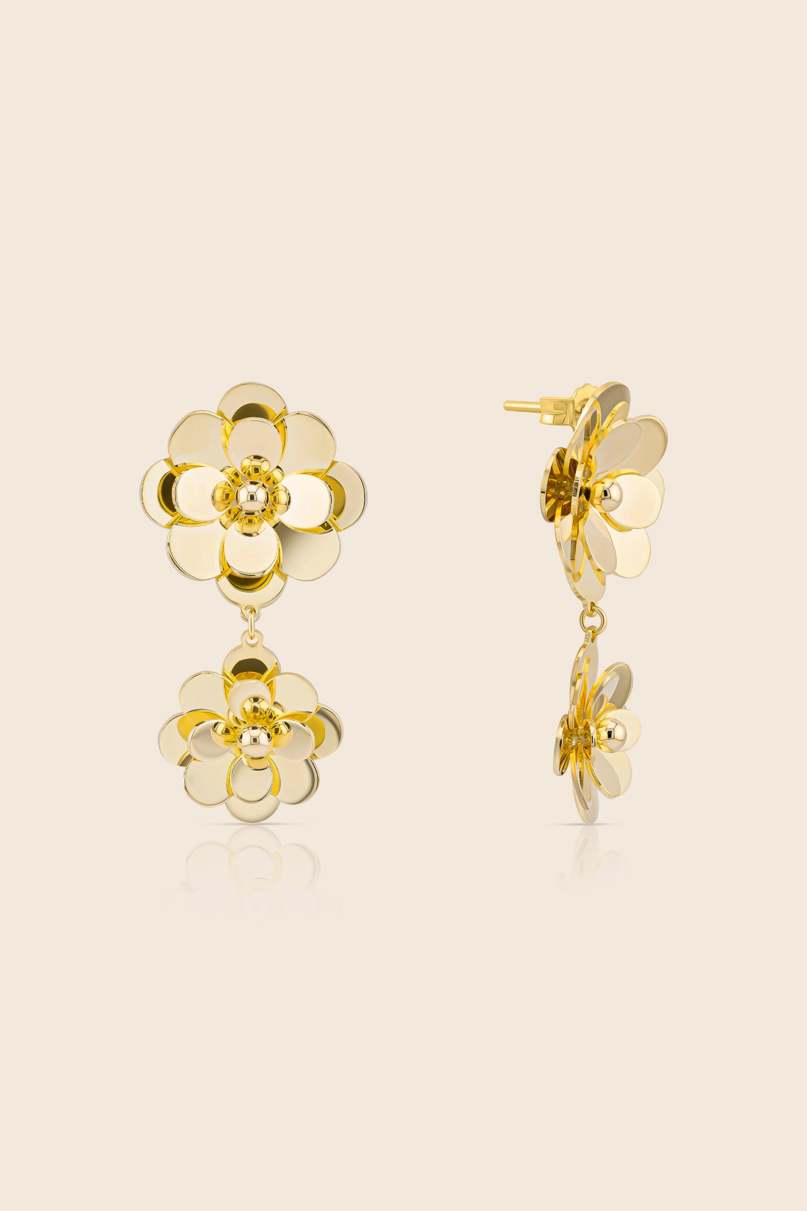 Glint yellow gold two flower earring