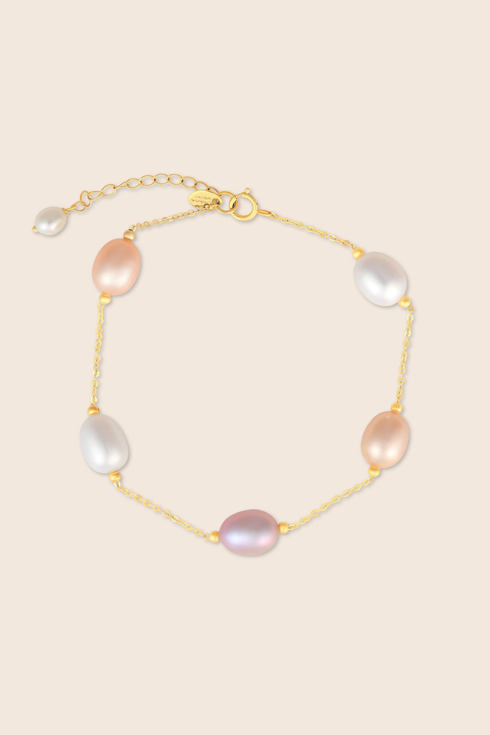 Varied hued pearls are set on the yellow gold bracelet, forming an elegant celebration of color and grace, where nature?? beauty is reflected in every radiant detail